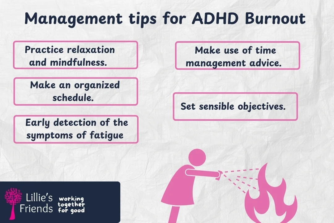 There are a number of tactics that can lessen the likelihood of experiencing ADHD burnout or lessen its symptoms. Among them are the following:
